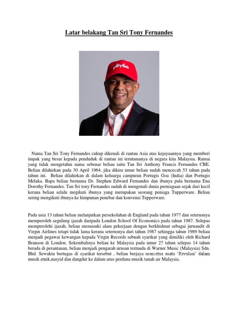 Latar Belakang Tan Sri Tony Fernandes Pdf